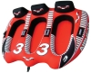 The bottoms are shaped like boat hulls which is the key to the unparalleled lively and stable ride. Especially popular with young children, as they feel very safe sitting on the comfortable inflated floors inside the cockpits. Kids and adults will enjoy the stunning Nascar-inspired graphics. The durable 30 gauge bladders are completely encased in durable double-stitched nylon, there is no exposed PVC. The striped nylon wrap handles have neoprene knuckle guards for comfort. An EVA "Indy Cap" covers the Boston valve. 93" x 67".
