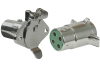 Polarized, chrome plated housing and spring loaded cover. High impact green Cycolac insulators and split brass contacts. Mounting holes 1-1/4" on center.